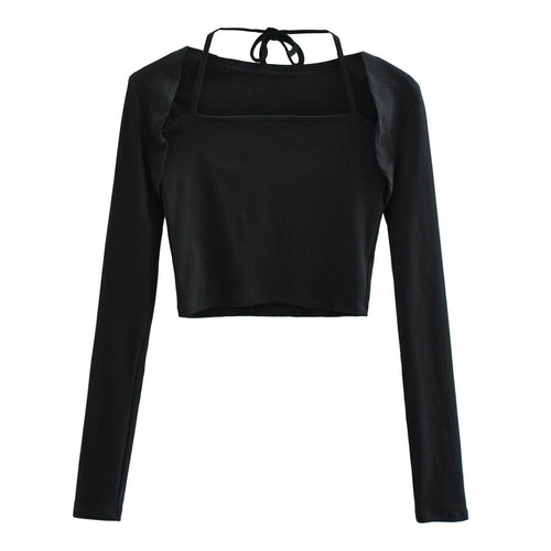 2pcs Set Halter Camis Long Sleeve Cropped Tee